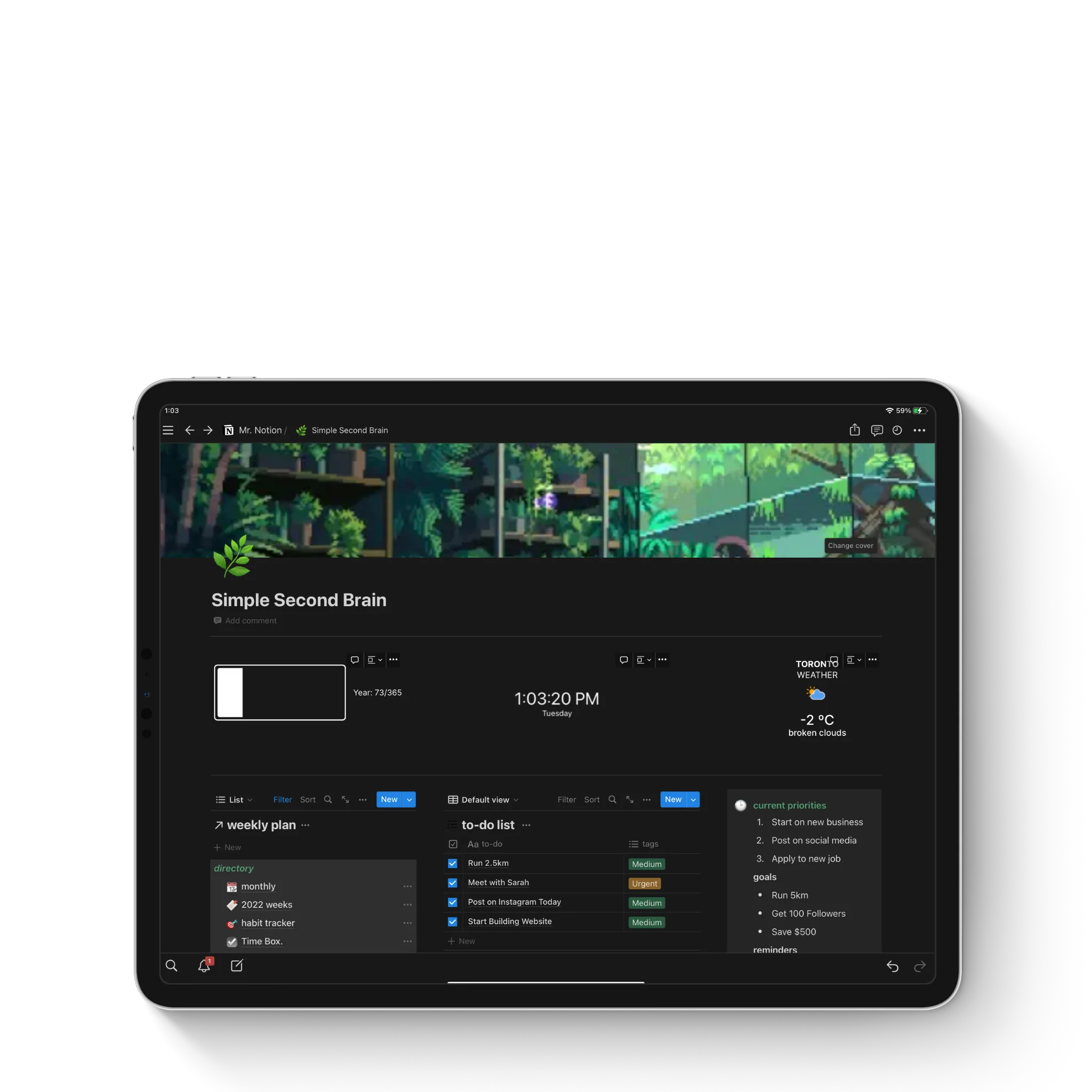 Overwhelmed by all the functions of most planners and sites? Take a step back with this stripped-down, basic, and minimal Second Brain Template. It provides the fundamentals that will get you started in your organization journey.
